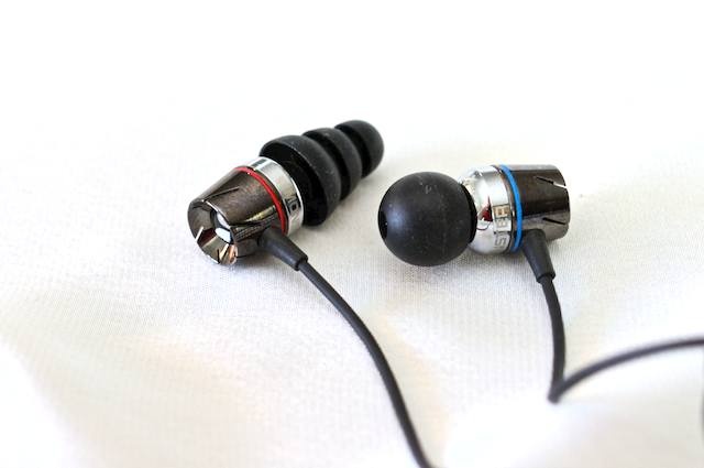 I also had an frustratingly difficult time trying to get the earpieces to fit right. In fact, I think these ‘phones are up there among the worst-fitting IEMs I’ve ever shoved in my ears. Part of the problem seemed to be the shape of the four sets of tips, none of which really worked for me; I eventually settled on using a flanged tip for just the right ear (which sealed well enough but was somewhat uncomfortable) and struggled with a standard tip for my left ear (the flanged tip was too uncomfortable in that ear) for the entire length of the test, only occasionaly able to achieve a decent seal. The other reason might have been the weight of the metal earpieces, or perhaps the shape of the nozzles.
