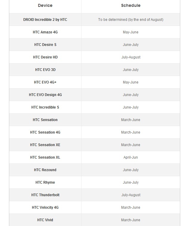 Here’s an updated list of HTC devices expected to receive Android 4.0 and a general idea of when.