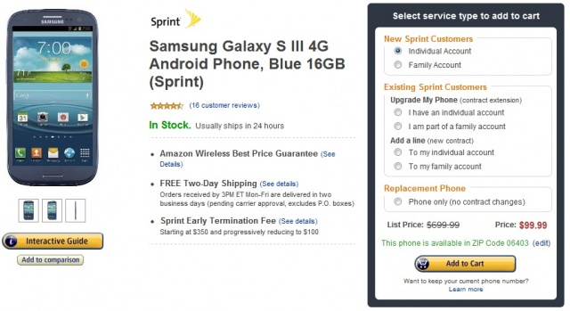 Amazon Wireless Now Offering The Sprint Galaxy S III For A Ridiculous $99 [Deal Alert]