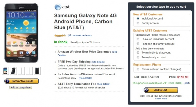 Last but not least, Amazon Wireless is offering up the AT&T Samsung Galaxy Note for $159.99 on a two-year contract. This last one is a tough call, considering Samsung is supposed to be unveiling the Galaxy Note 2 anytime now and we’re guessing prices may fall even lower once that happens. Still, something to consider.