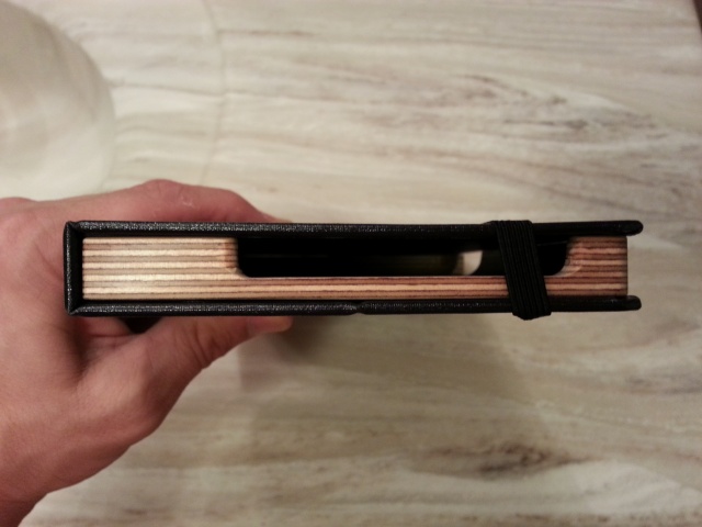 The cover of the case has the traditional rigid feel of a jacketless hardcover book and while I’ve been spoiled by the posh feel of soft leather, it was quite comfortable and familiar to hold. If you too have been spoiled by leather, no sweat, Portenzo offers a high-end leather model called the Alono. In fact, Portenzo offers a multitude of customizations. Chose from a variety of colors, materials, or shoot them an email to have a custom case made using your own art or company logo.