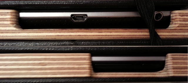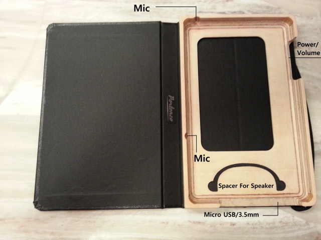 Easy access to ports and buttons… yeah, the Portenzo BookCase has ’em. You’ll find every pertinent cutout included in the frame. Easy and open access to the Power/Volume buttons, microSD port, 3.5mm audio port, microphones, and even a speaker bumper (which coincidentally looks like a pair of headphones) for an optimal in-case audio experience.