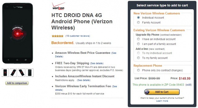 Amazon Wireless Offering The DROID DNA For $149.99 [Deal Alert]