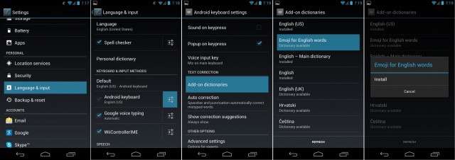 As long as you’re running Android 4.1+, it’s pretty easy to install and activate the Emoji dictionary.