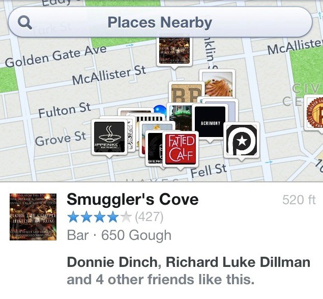 The appeal of Nearby is very simple but also extremely powerful. For instance: rather than having to search through hundreds of anonymous reviews for sushi restaurants in your area on Yelp, you could just pull up Nearby and get a sushi recommendation that’s based on what your sushi-aficionado friend Jeremy has Liked or checked into in the past.