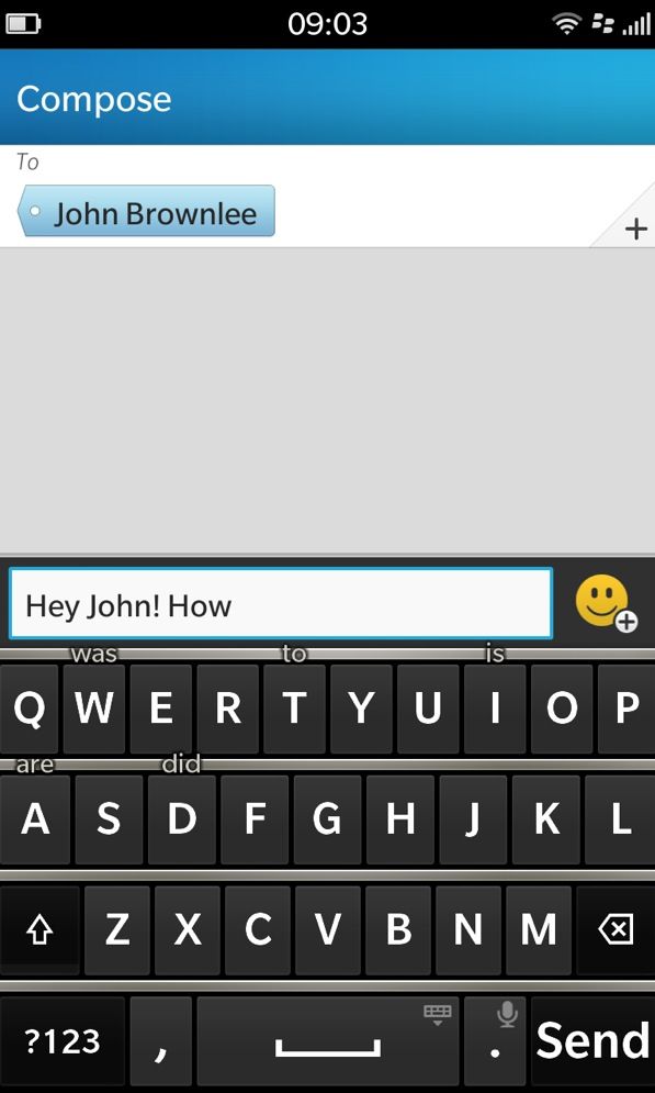 Screen Shot 2013-02-05 at 17.39.43BB10’s keyboard is terrific. BlackBerry is famous for its keyboards, and it’s proven that they don’t have to be physical to be awesome. It sports a nice layout, and typing is accurate and responsive. Up until now, I didn’t think Apple’s iOS keyboard could be beaten, but BlackBerry’s done it. After just a few hours with the Z10, I was already a better typist on this device than I am on other smartphones — and I’m not a bad touchscreen typist.
