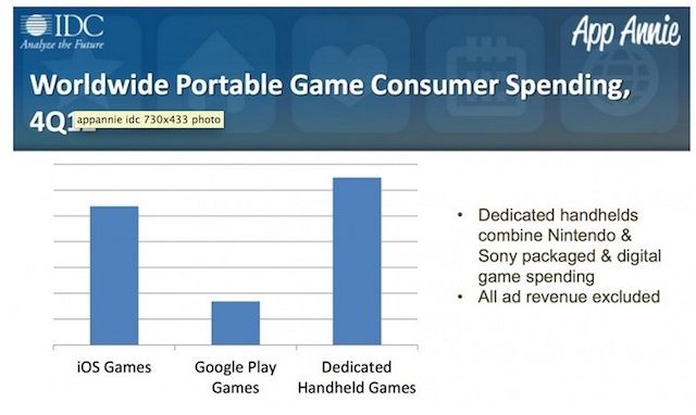 Without the holiday season to prop them up, the gap between dedicated handheld games and iOS and Android games is likely to be much wider in the coming quarters. The report also didn’t take ad revenue into account, which would have given iOS and Android games a huge boost as many publishers rely on advertising to make up the cost on free titles.