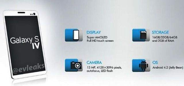 According to the website, we can expect the Galaxy S IV to have a 5-inch Super AMOLED displau, an eight-core Exynos 5 Octa processor, 2GB of RAM, up to 64GB of internal storage, and a 13-megapixel camera with autofocus and an LED flash.