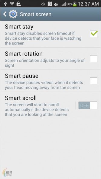 Another screenshot, which you’ll see on the right, also shows the handset’s new “smart screen” features, including smart rotation, smart pause, and smart scroll. The latter allows you to scroll through pages simply by moving your eyes up and down the display, and it’s also expected to come to the Galaxy S III.