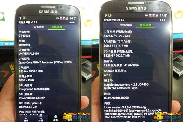 The image you see above was posted to Chinese forum 52 Samsung, and it’s just one of many of that purportedly show the Galaxy S IV. The handset looks a lot like a Galaxy Note II — albeit a slightly smaller version — but according to a benchmark test, its internals are very different.