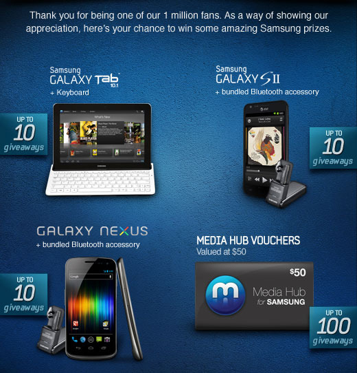 Samsung Mobile USA Celebrates 1 Million Facebook Followers With A Giveaway – 30 Devices And 100 $50 Media Hub Vouchers To Be Given Away