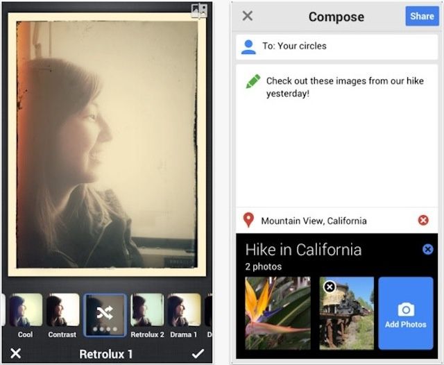 The Google+ apps for Android and iOS have today been updated with a number of new features and improvements. Both apps get user interface tweaks and the ability to re-share posts to communities, while iOS users will also see a number of Snapseed filters that will allow them to enhance their photos before they post them.