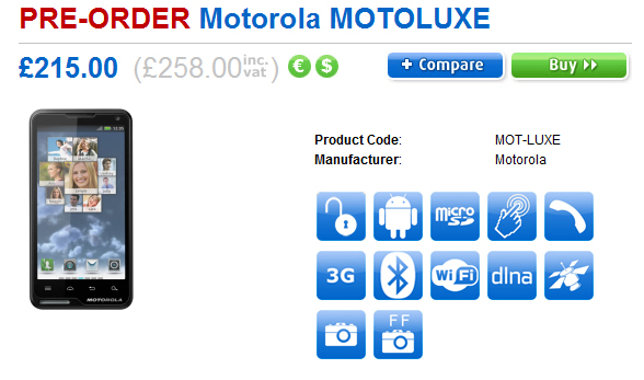 Today on Clove UK’s blog, they announced prices and pre-orders for three new Motorola devices. If you head over to the Clove site today, you can now pre-order the Motorola DEFY MINI, MOTOLUXE and the White Motorola RAZR. We’ll give you a run down of specs and source links for those interested in picking up one of these Motorola devices from the UK retailer Clove.