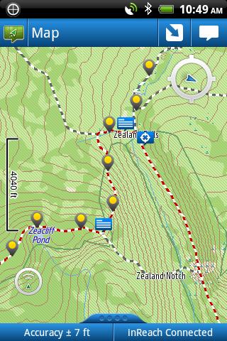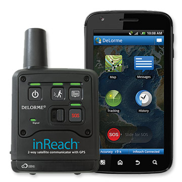 Delorme inReach paired with an Android device and the Earthmate app