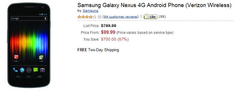 Amazon Wireless Offering The Samsung Galaxy Nexus For An Insane $99.99 [Deal Alert]