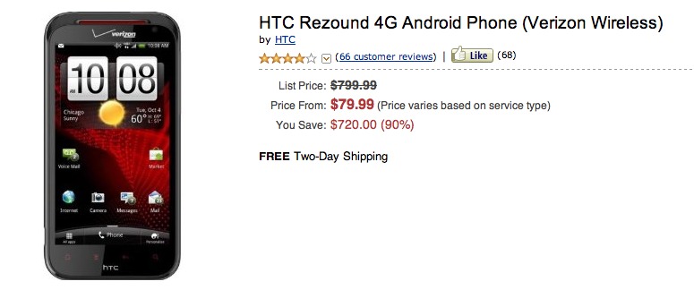 Amazon Now Offering The HTC Rezound For $79.99 [Deal Alert]