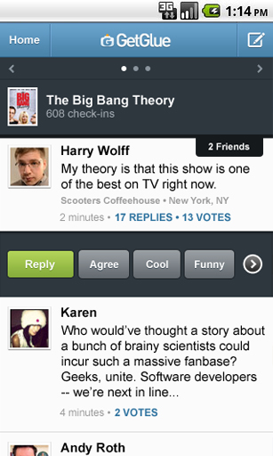 Popular entertainment social networking and check-in site GetGlue, has decided to revamp their Android app in order to bring new features to a new year. If you’re a seasoned user of their service, you’ll be happy to know they’ve added a new visual stream of check-ins, the ability to participate in multiple conversations, and personalized guides for TV, movies, music and more. It also gives the app a more unified look compared with the website and iOS (if you’re into that sort of thing). The newest features provide: