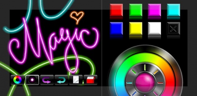 Magic Marker (Jaytronix) – This app is a simple touch-to-paint app for drawing neon-style doodles on a plain black backround. It’s very minimal and also features an easy to use color selector and wheel. The app isn’t designed to be kid-centric which makes it easy for anyone to pick it up and draw. It also allows you to easily set your drawings as your wallpaper or share them via email, MMS, Facebook and Twitter.