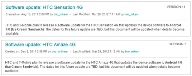 T-Mobile has sort of faded away ever since they attempted to join the dark side but they’re slowly climbing back into customers good graces. Today they detailed their plans to update a couple of HTC devices to Android’s latest and greatest Ice Cream Sandwich. HTC Amaze 4G and Sensation owners can expect to have their devices updated to Android 4.0 according to T-Mobile support documents posted online. The dates for the update are listed as TBD but the fact that these documents are up is a good sign.