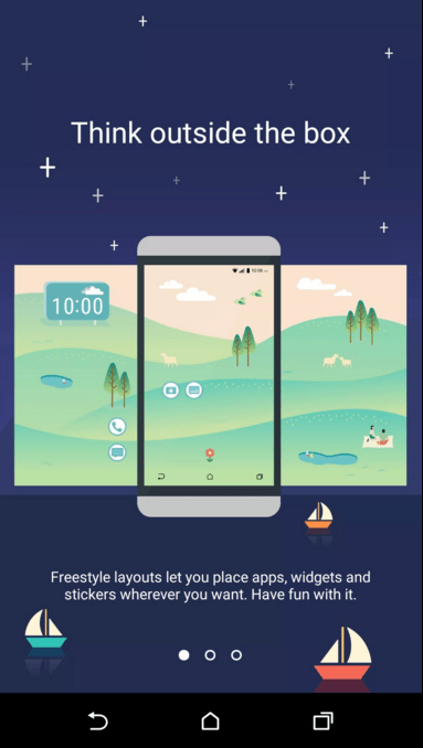 HTC’s Freestyle UI changes that by making app shortcuts part of the backdrop. You select a pretty wallpaper, get a bunch of stickers that match its look, and then tapping those stickers takes you to your favorite apps.