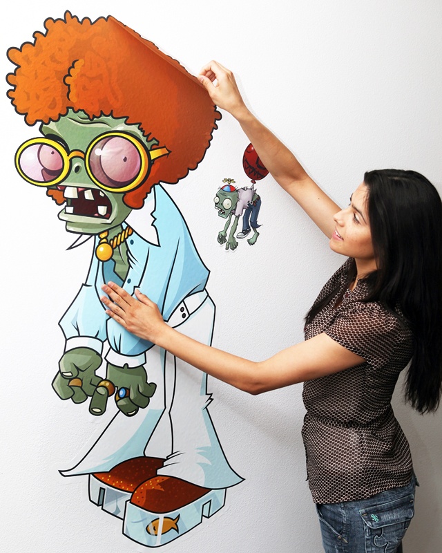 PopCap and Walls360 have teamed up to bring the the zombie apocalyptic hit Plants vs. Zombies to a bare wall near you. You’ve spent countless hours defending your virtual home from these hideous undead, now you can protect your real home with these re-positionable, self-adhesive wall graphics that will stick to almost any surface.