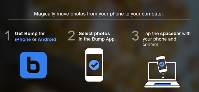 The creators of the popular Bump app that lets you share contact information and photos by simply bumping two phones together has bumped up their magic to include your computer. Thanks to today’s update, users will now be able to “magically” transfer their photos from their phone to their computer by simply bumping their phone against their keyboards spacebar. Say what? Yea, and the best part is there’s no additional software needed!