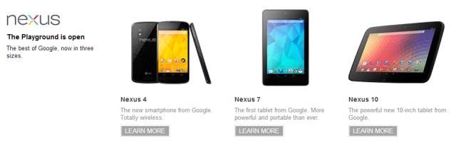 Google is only hours away from stockpiling the Play store with Nexi galore. Sometime after midnight (PST) the Nexus 4, Nexus 10, and Nexus 7 32GB/3G are expected to go on sale here in the US. Rumors have already been flying around that the Australia Play Store quickly sold out, and judging by the giddy schoolgirl reactions I’m seeing on Google+, I’d say the same will happen here in the states.