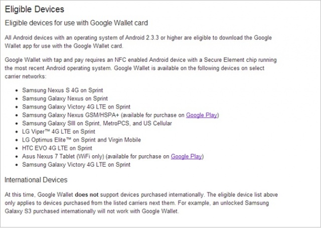 Last week we reported about the possibility of a physical Google Wallet card and its implications. Today, more evidence has surfaced, and this time, straight from the official Google Wallet support page. Eagle eyes spotted references to the card as well as compatible Android devices. These references have since been taken down, however, you can see it in its entirety in the screenshot above.