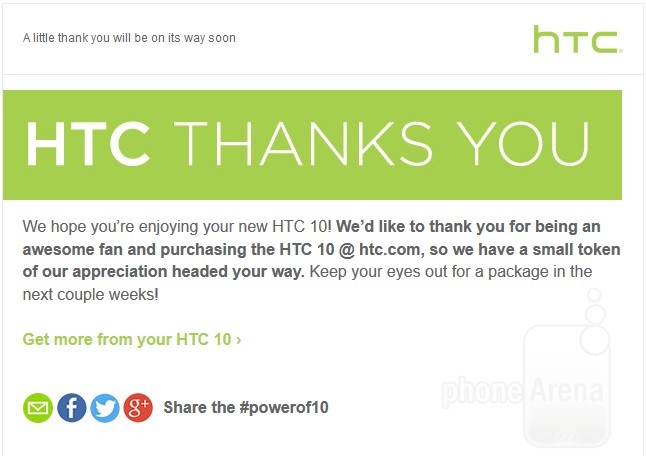 HTC started shipping out the HTC 10 pre-orders to customers earlier this week, and today, the company has sent an email to customers that pre-ordered the device to inform them that a “small token of our appreciation” is headed their way.